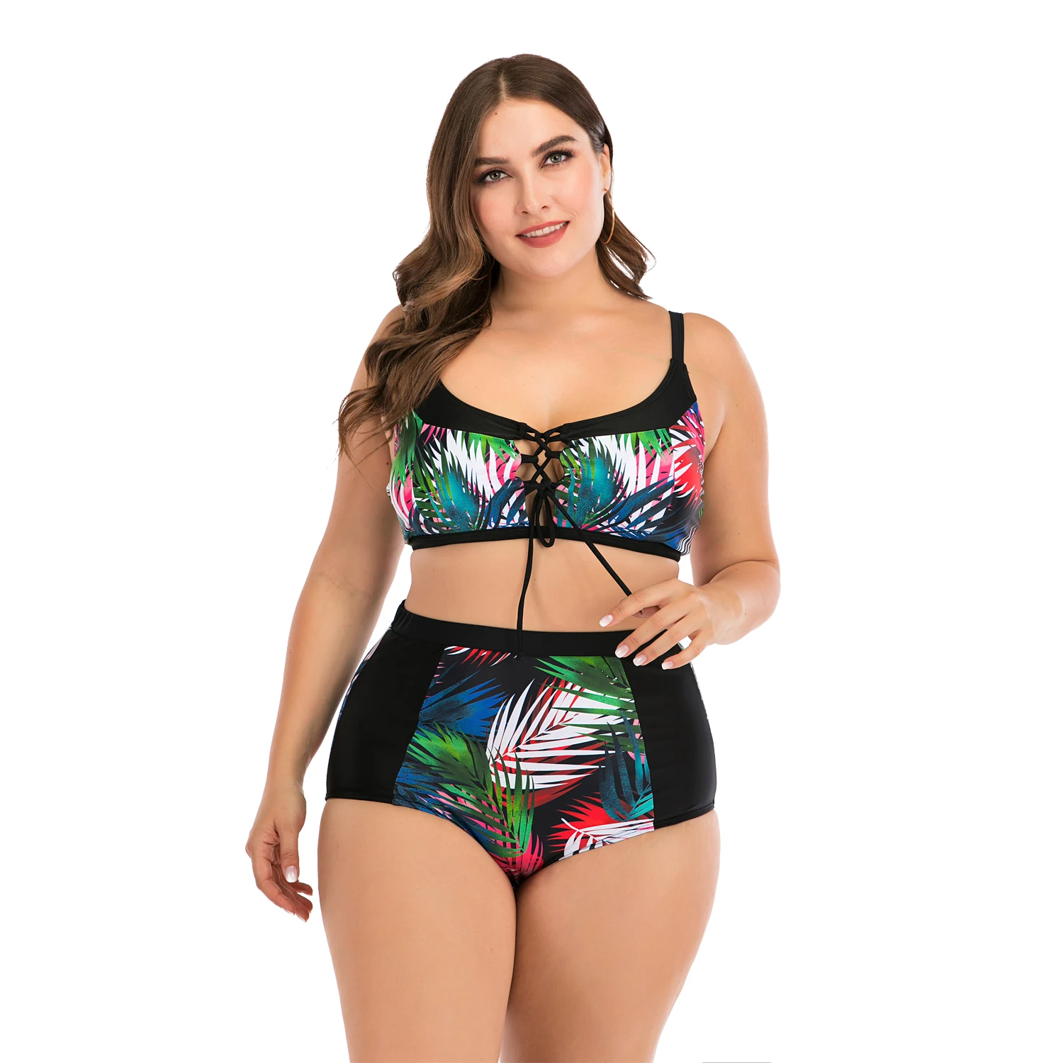 | Lunamy 2020 New Coloful Leaves Printed Bikini Set Women Plus Size Bathing Suit High Waist Swimwear Two Piece Swimsuit Biquini |