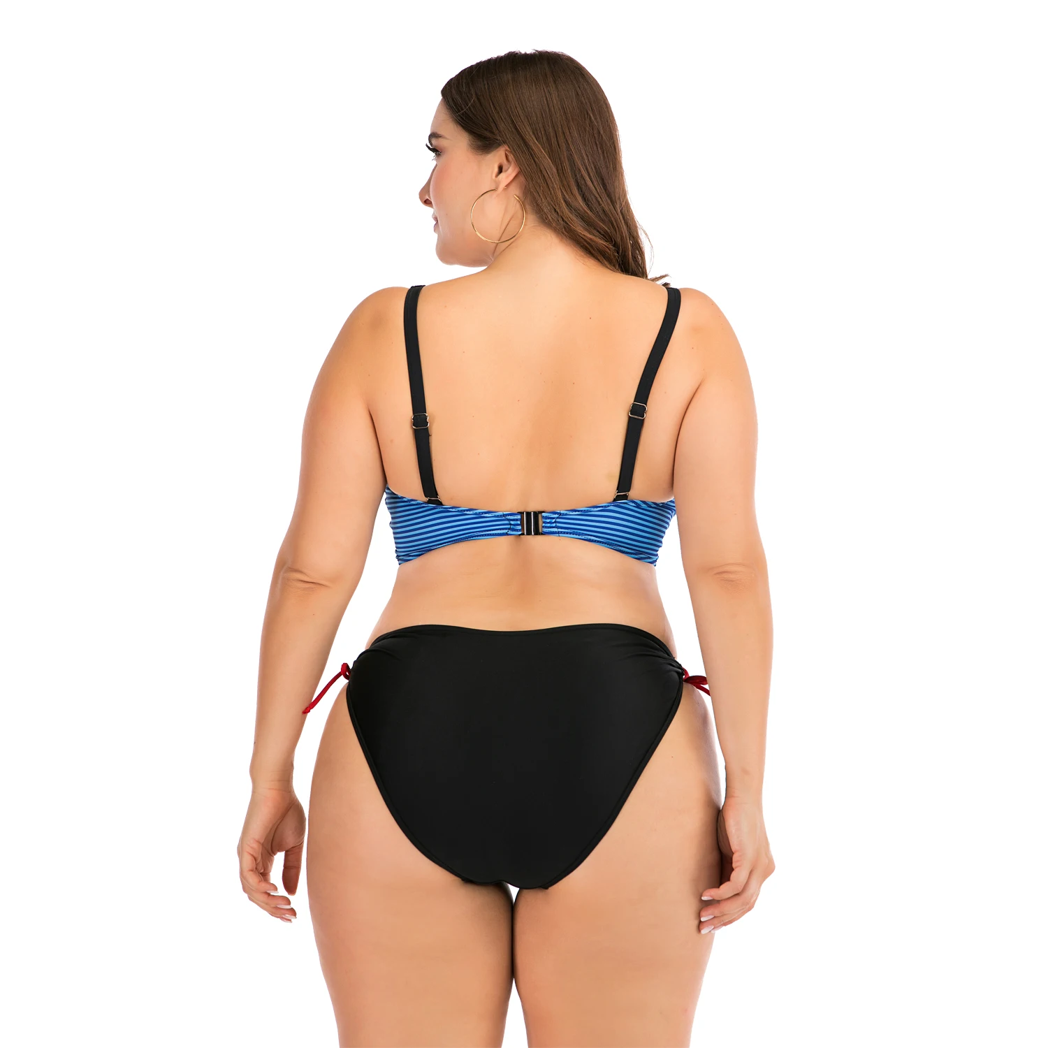 Lunamy 2020 Sexy Plus Size Bikini Set Women Blue Striped Swimming Suit High Waist Swimwear Big Size Biquini Bathing Suit