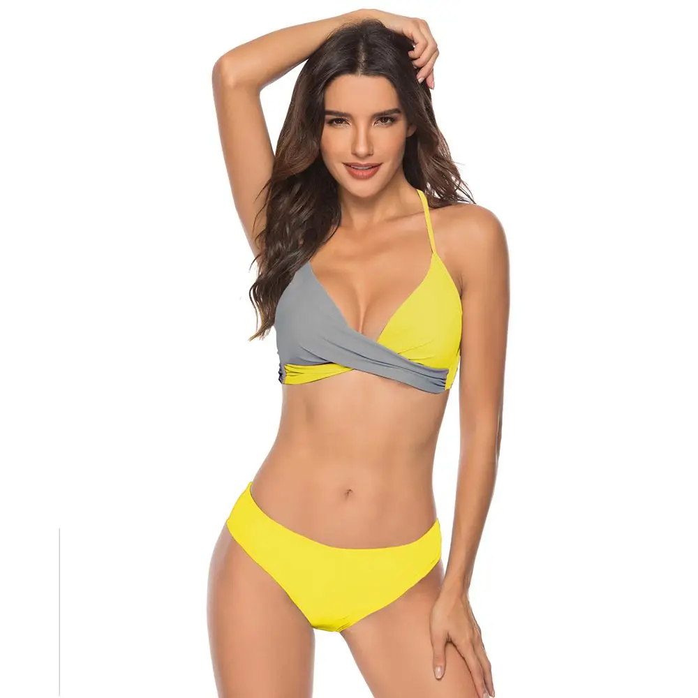 Best Price Comparison With TYAKKVE Push Up Bikini 2020 Cross Solid Women Swimwear Bandage Swimsuit Halter Top Maillot De Bain Biquini Bathing Suits 3XL