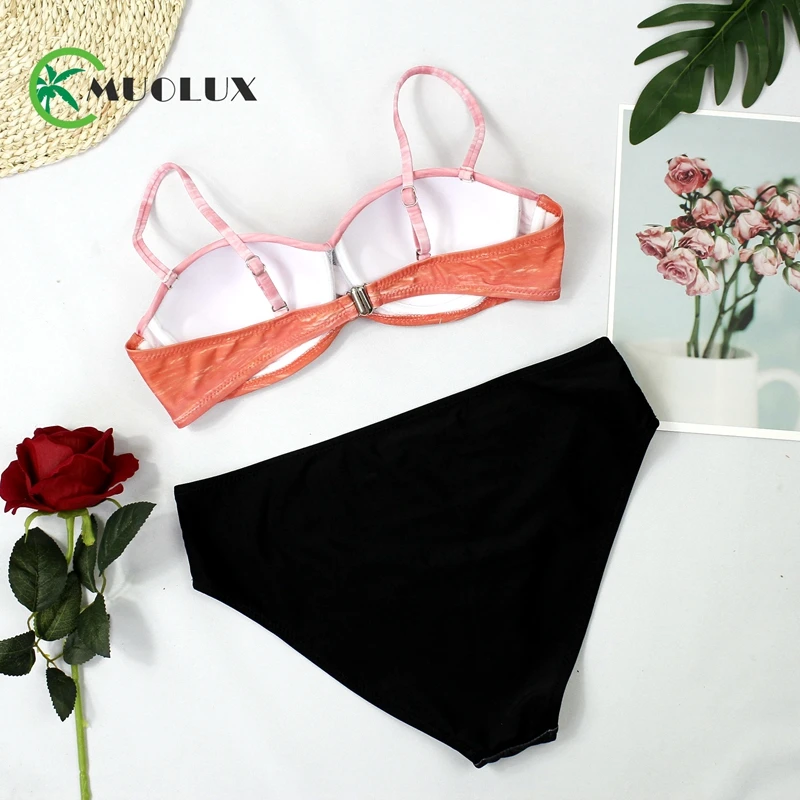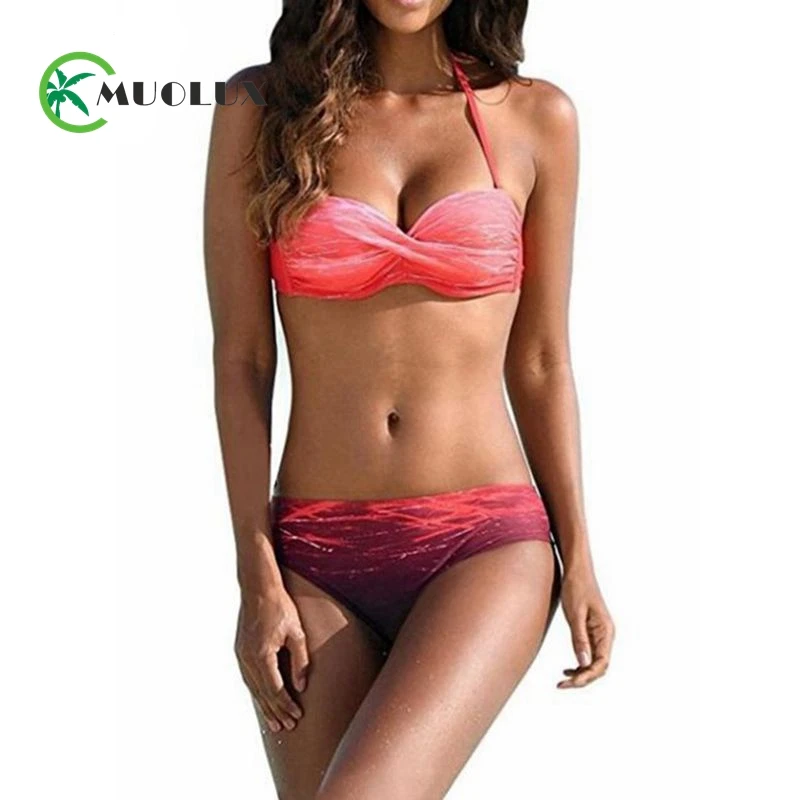 | 2020 New Two Piece Bandeau Push Up Sexy Bikini Set Gradient Color Swimsuit Underwire Female Bathing Suit Plus Size Beach Wear XL |