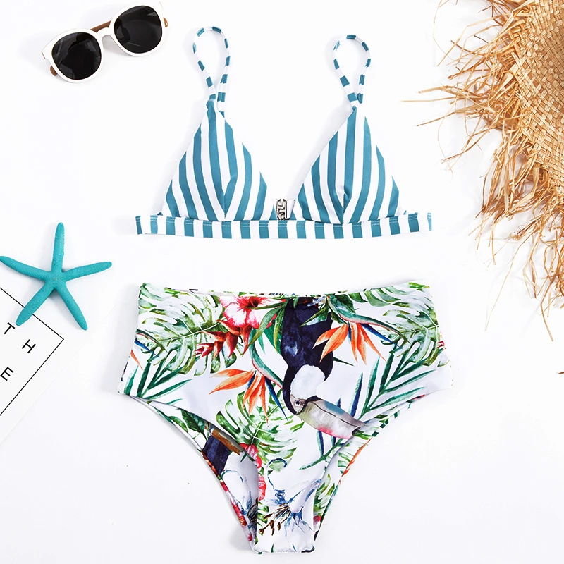 | Stripes And Print High Waist Bikini Swimsuit Bikinis Sexy Brazil Swiming Suit Women S-XL Biquini Cintura Alta Push Up Swimwear |