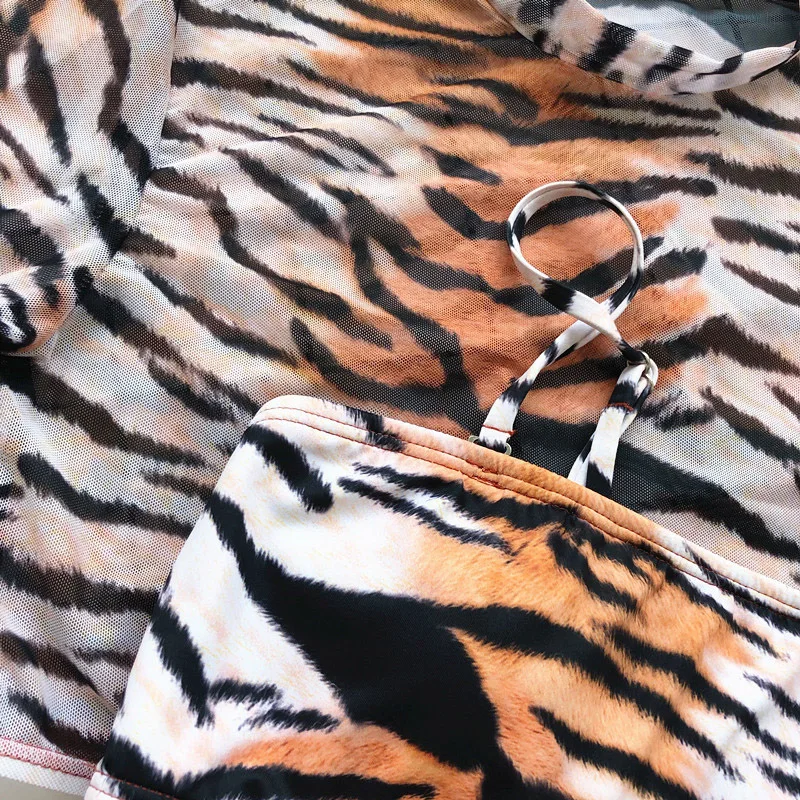 | Womens Swimwear 2020 Fashion 3pcs Bikini Set Tiger Leopard Printed Sexy Bikini Beach Long Sleeve Sunscreen High Neck Swimsuit |