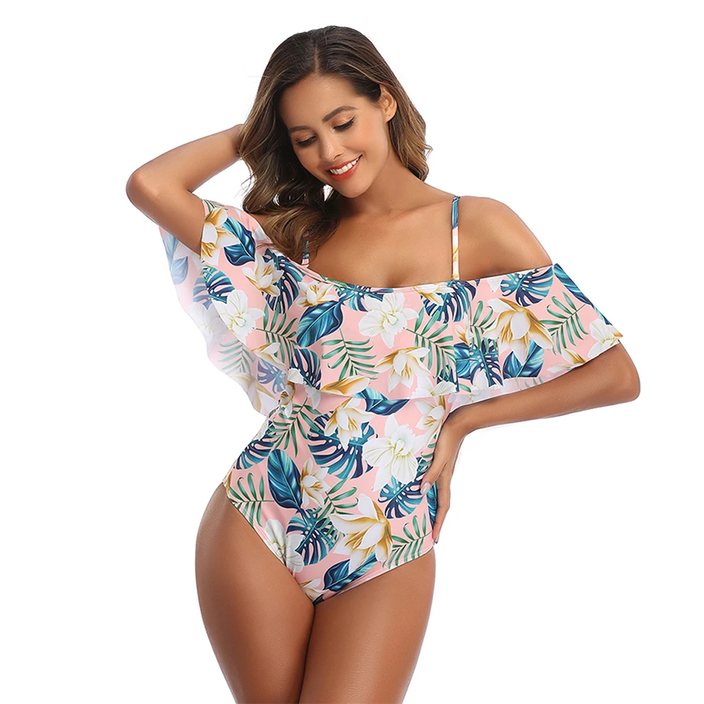 | 2020 New Sexy Off The Shoulder Solid Swimwear Women One Piece Swimsuit Female Bathing Suit Ruffle Swim Wear XL Sexy Bodysuit |