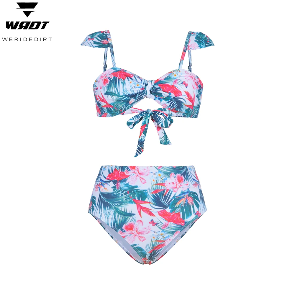 | WERIDEDIRT 2020 womens Detachable Floral Swimwear Sexy High Belt Chest Pad Digital Printed Bow Two Pieces Split Swimwear women |