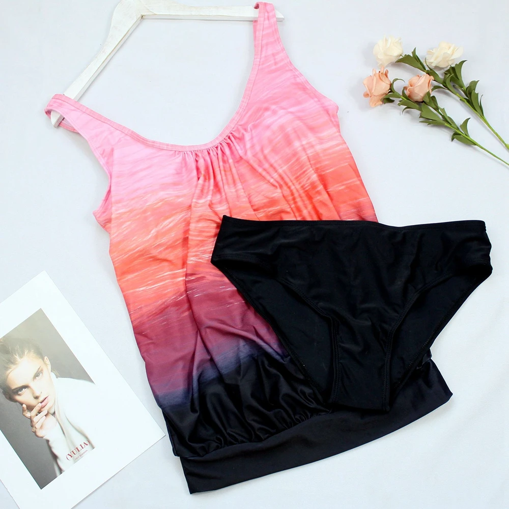 | CPUTAN 2020 New Gradient Tankini Women Two Pieces Swimsuit Vintage Sporty Plus Size Swimwear Padded Push up Bathing suit 3XL |