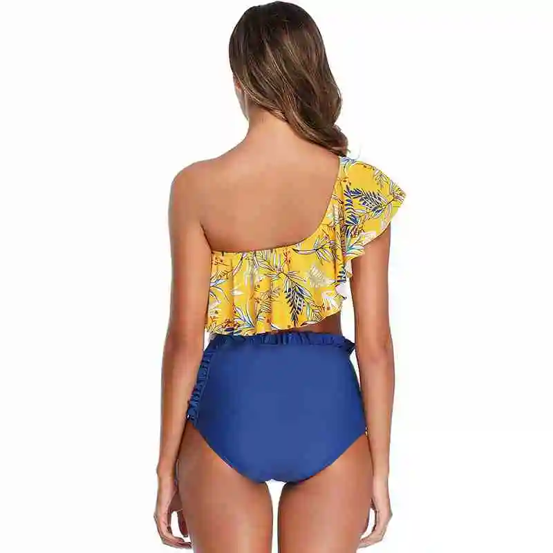 Best Price Comparison With MUOLUX 2020 New Sexy One Shoulder Bikini Women Swimsuit Ruffle Swimwear High Waist Bathing Suit Beach Wear Bikini Biquini Female