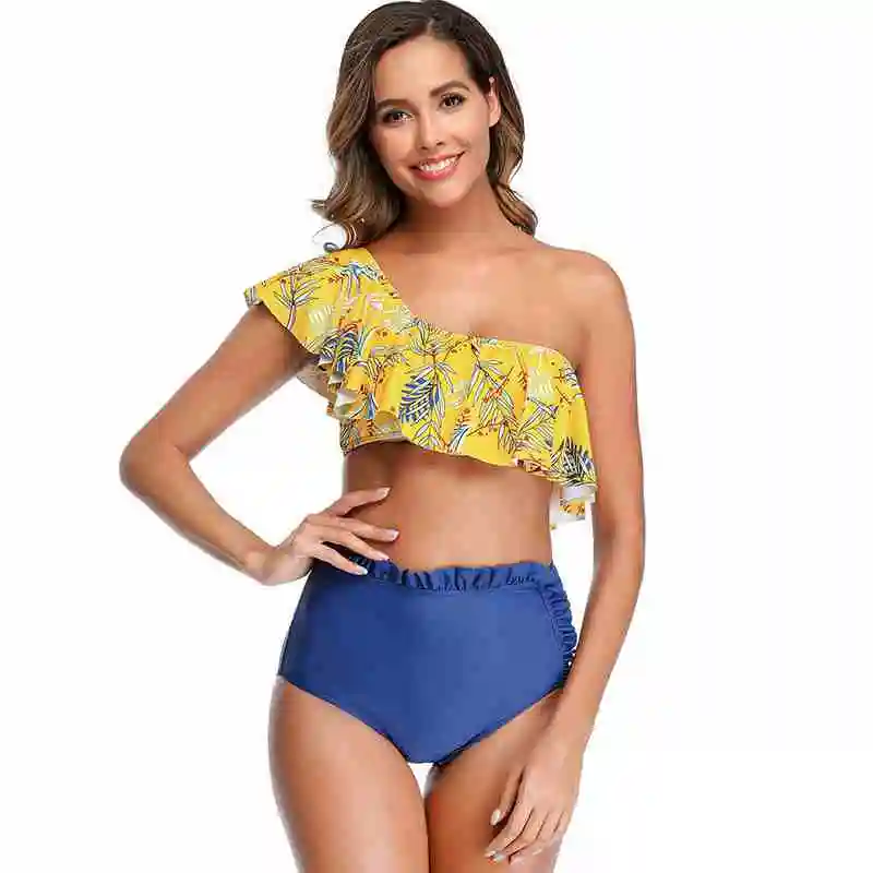 MUOLUX 2020 New Sexy One Shoulder Bikini Women Swimsuit Ruffle Swimwear High Waist Bathing Suit Beach Wear Bikini Biquini Female