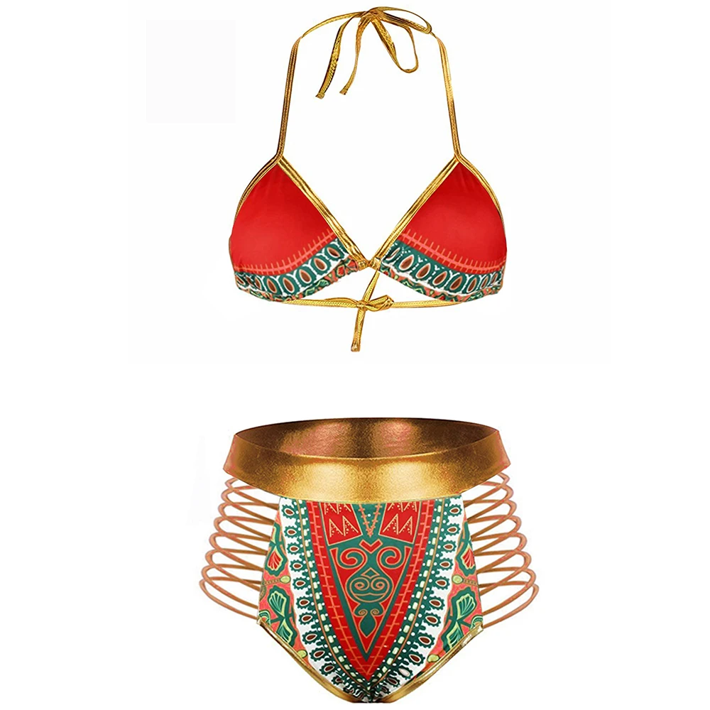 Women Tribal Print Bikini African Metallic Swimsuit Two Piece Beachwear Sexy Brazilian Biquini Bathing Suit Swimwear Female 2020
