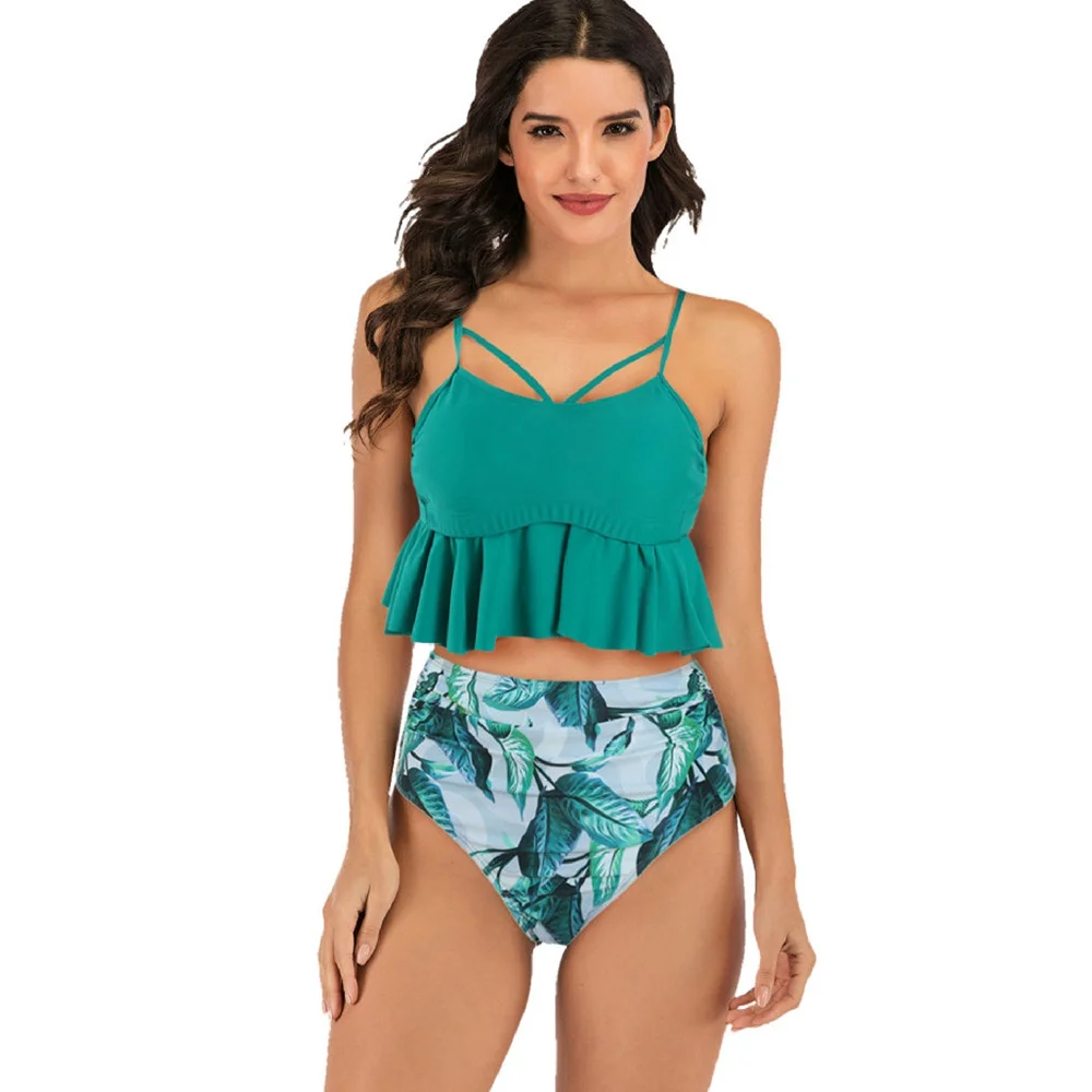 | MUOLUX 2020 Tankini Swimsuit Stripe Ruffled Women Bikini Floral Two Piece Swimwear Girl Bathing suit Plus Size Swimming Suit |