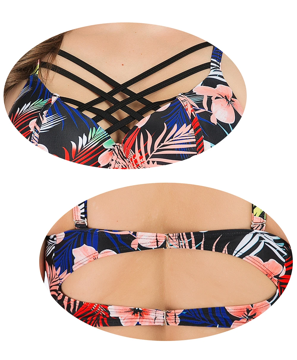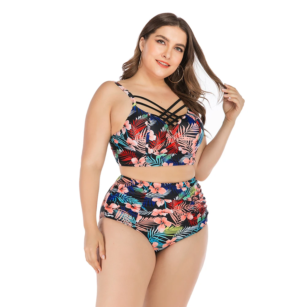 | Lunamy 2020 Colorful Floral Printed Bikini Sets Women Plus Size Bathing Suit Cross Bandage Swimwear Hollow Out Back SwimSuit |