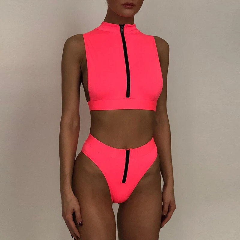 Sexy zipper swimsuit female Neon bikini set 2020 High waist swimwear women High cut bathers bathing suit Summer beach wear new