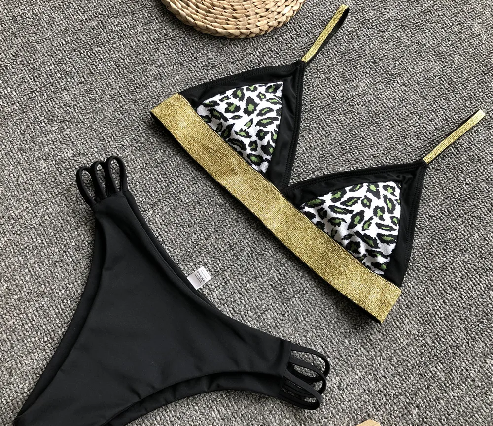 | Explosion Ladies Bikini Split Sexy Swimsuit European And American Sequin Bikini Sexy Leopard Stitching Swimsuit Mid Waist Bikini |