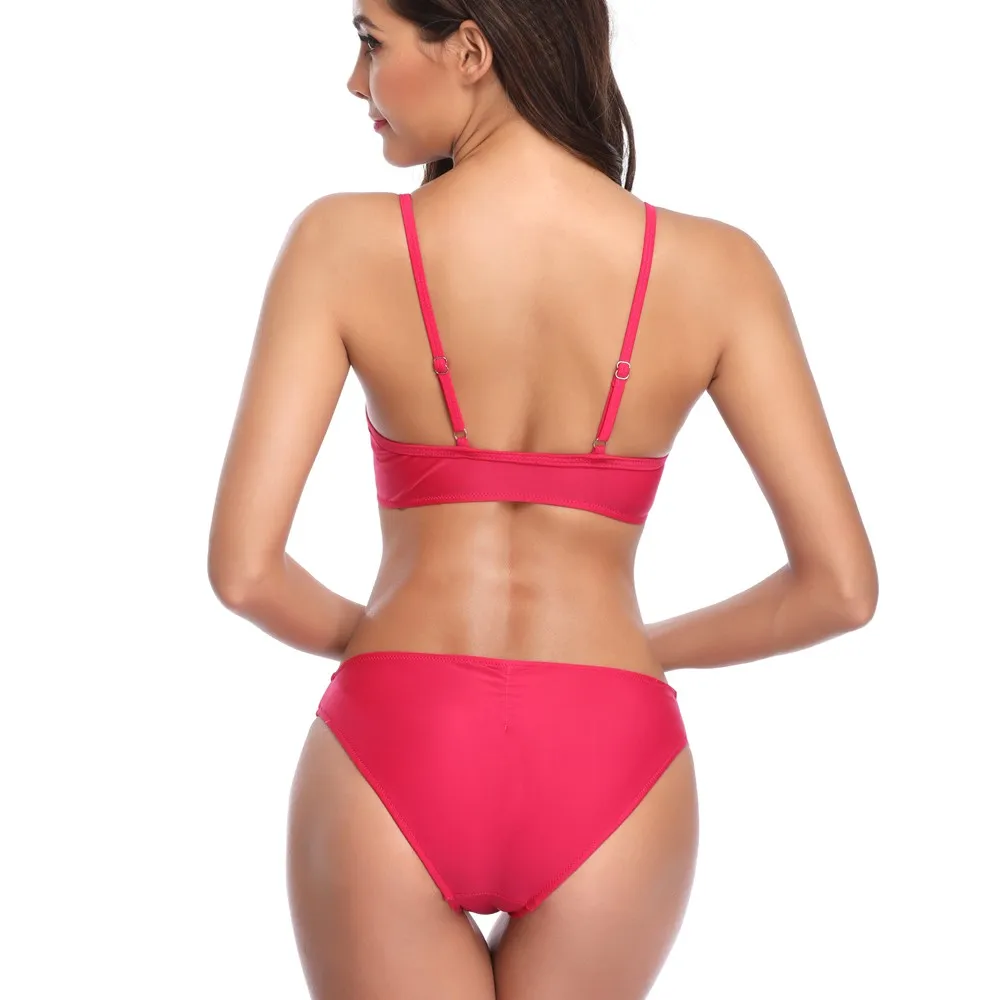 WERIDEDIRT 2020 Womens Summer Bra Swimsuit Sexy Two Pieces Swimsuit Tie Open Back One Knee Push Up Bra Bikini Swimsuit Female