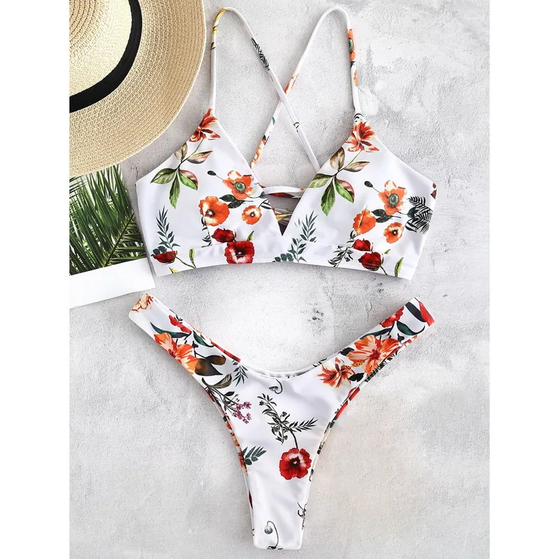 Lunamy 2020 Colorful Floral Printed Bikini Sets Women Plus Size Bathing Suit Cross Bandage Swimwear Hollow Out Back SwimSuitBuy Now On Aliexpress