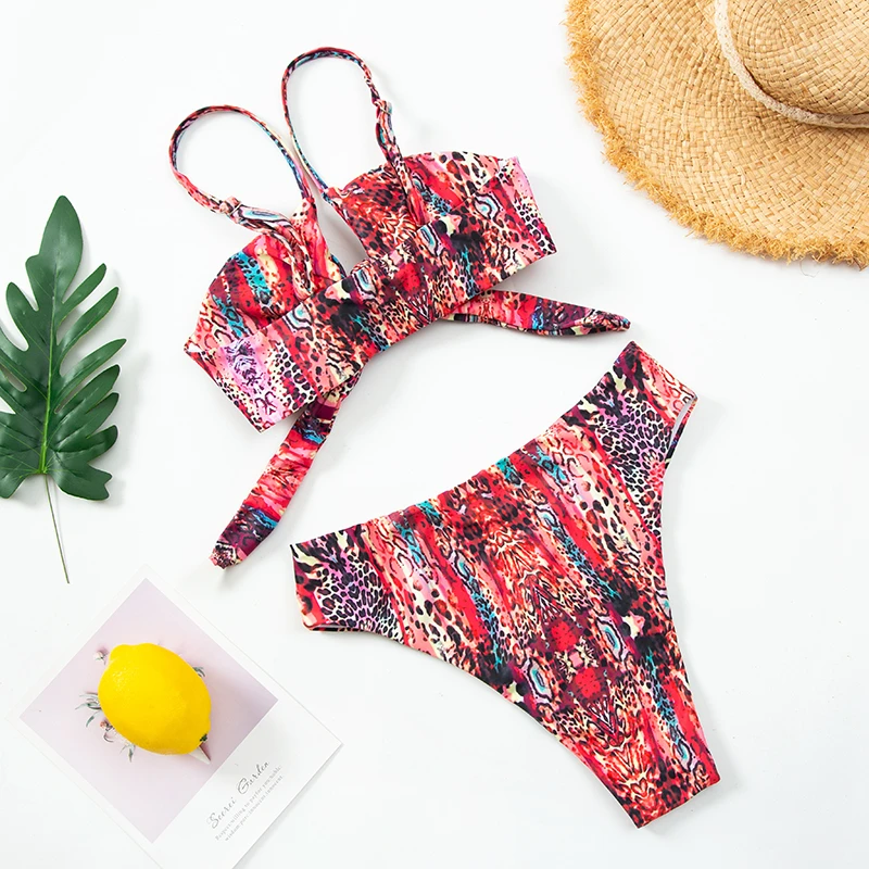 | Red Women Swimwear Bikini Set Brazilian Mujer Sexy Two Piece Swimsuit Print Biquini Mulher Womens Swim Wear Bathing Suit Summer |