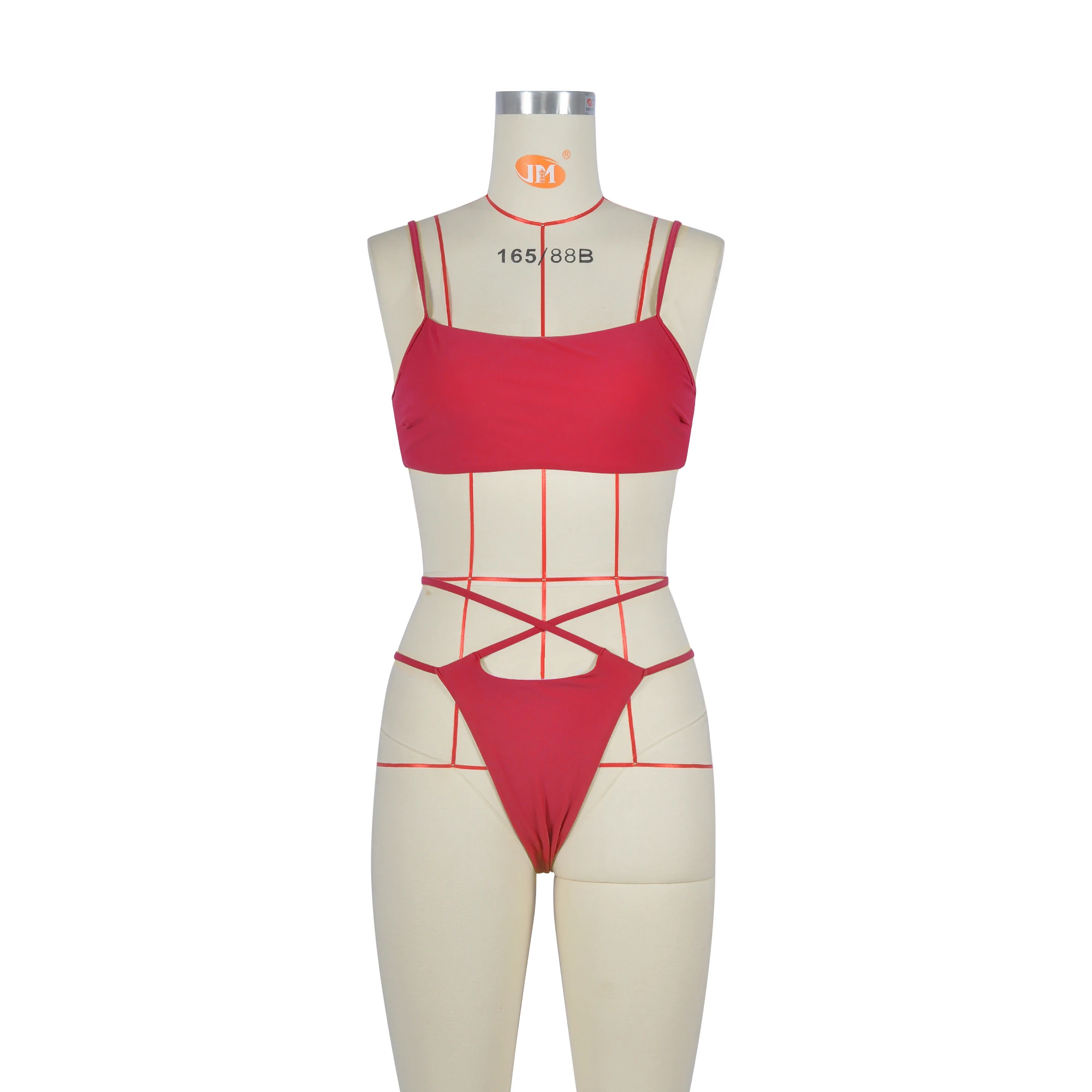 | WERIDEDIRT 2020 New Womens Cross Bandage Hollow Split Solid Bikini Suit Womens Swimsuit Push up Swimsuit Beach Suit Swimsuit |