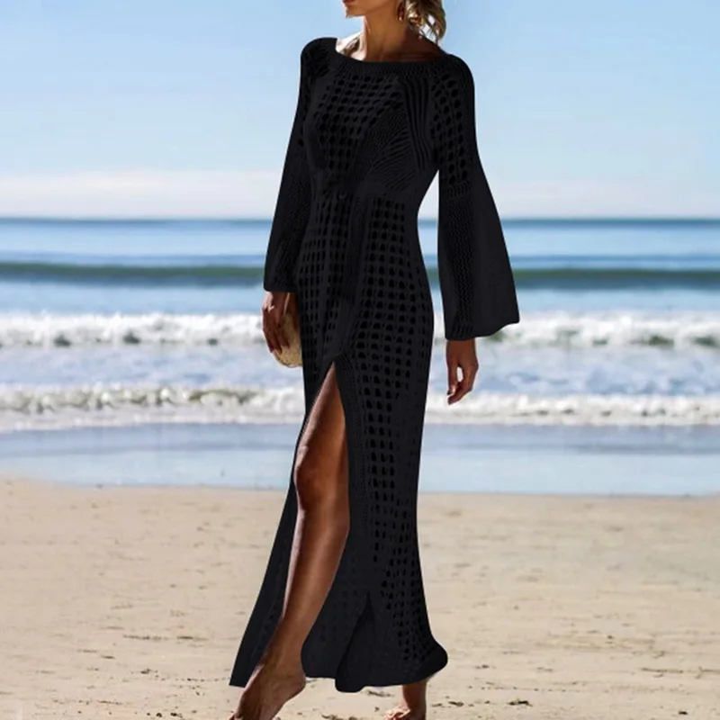 | 2020 Women Crochet Tunic Beach Dress High Split Ladies Cover-up Summer Women Beachwear Sexy Hollow Out Knitted Swimsuit Cover Up |