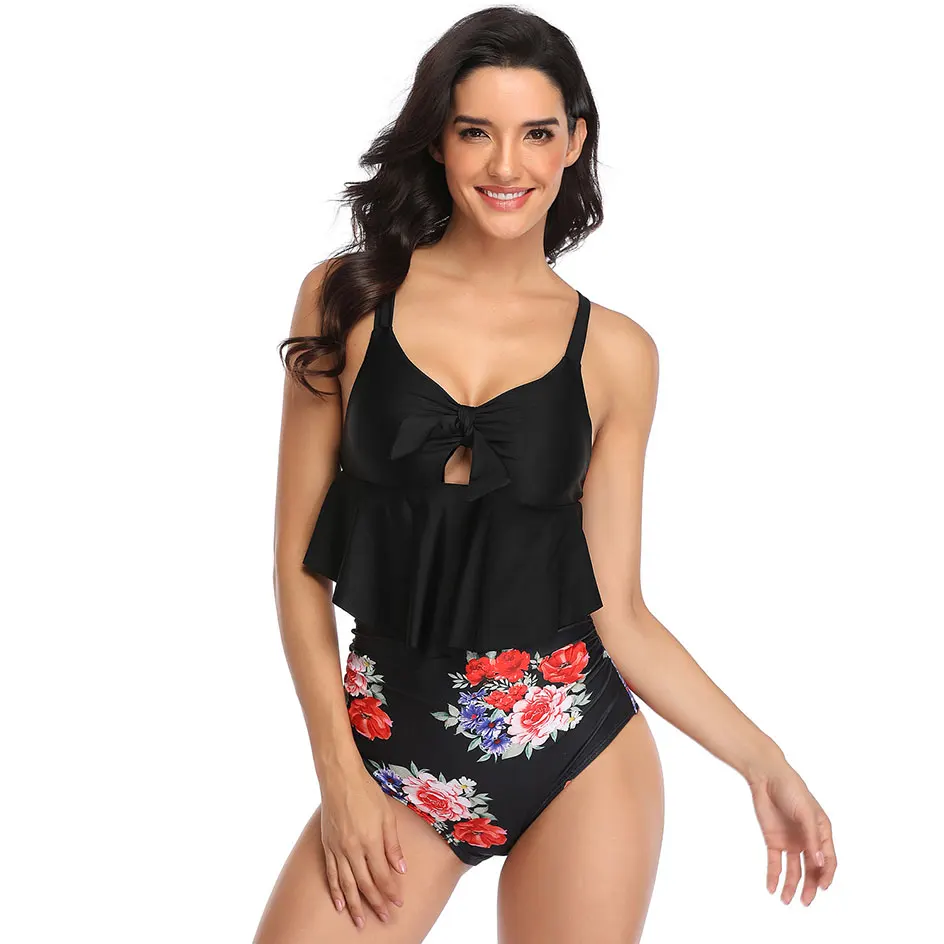 | MUOLUX Sexy Bikinis Women Swimsuit 2020 New Ruffle Swimwear Leaves Printed Bathing Suit Beachwear High Waist Biquini Female |